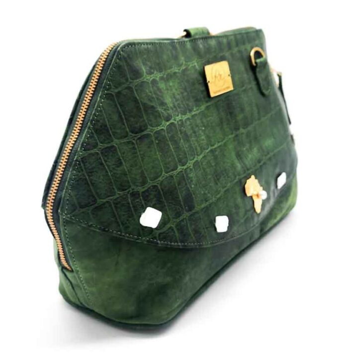 Radiance Leather Anyango Mini – Ladies Tote Handbag in Pure Cowhide Leather with Alligator Print with Pearls and 24k Gold Plated Brass