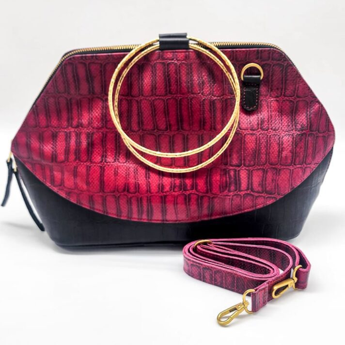 Radiance Leather Dw’e Half Moon Clutch Bag in 100% Cowhide with Seal print Red